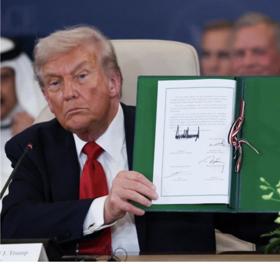 Presidenti i Shteteve të Bashkuara, Donald Trump, e nënshkroi të hënën në Egjpit planin e tij për paqe në Lindjen e Mesme, krahas negociatorëve nga Egjipti, Katari dhe Turqia.