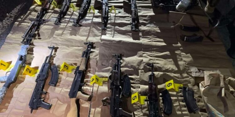 “Është gjetur një mitraloz, nëntë pushkë automatike, disa karikatorë bosh për një automatik dhe renditës për mitraloz, dy karikatorë për automatik me fishekë, një kavanoz me municione, një çantë shpine dhe sende të tjera”, thonë nga MPB./