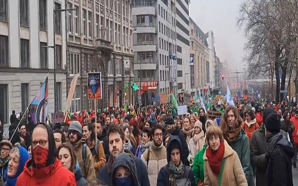 Pothuajse 100 mijë njerëz protestuan sot në Bruksel kundër planeve të qeverisë belge të qendrës së djathtë për të shkurtuar pensionet dhe shpenzimet sociale në mënyrë që të reduktojë borxhin e madh kombëtar.