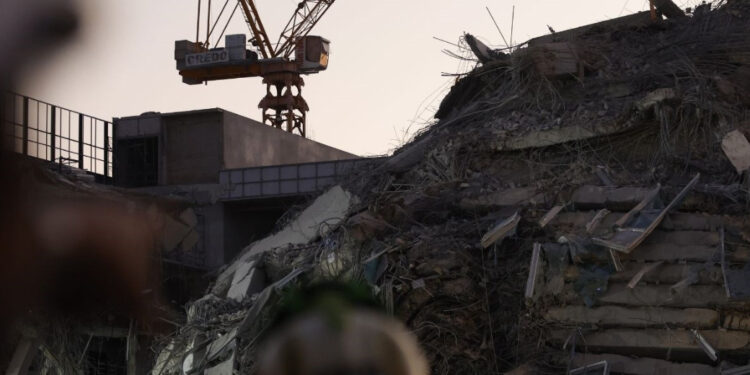 Punëtorët planifikojnë të përdorin makineri të rënda për të hequr sa më shpejt pjesët e ndërtesës së shembur.