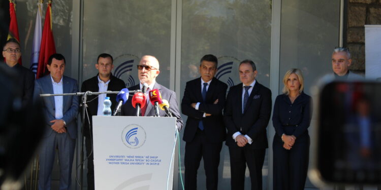 Në një ambient të ngrohtë para kampusit universitar u shënua ceremonia solemne e Universitetit “Nënë Tereza” në Shkup, ku sot i mirëpritën gjeneratën e nëntë të studentëve të rinj nga 8 fakultetet e UNT-së me mbi 30 programe studimore.